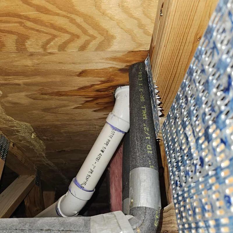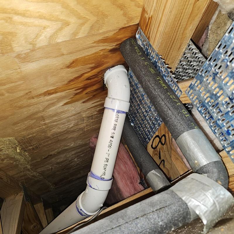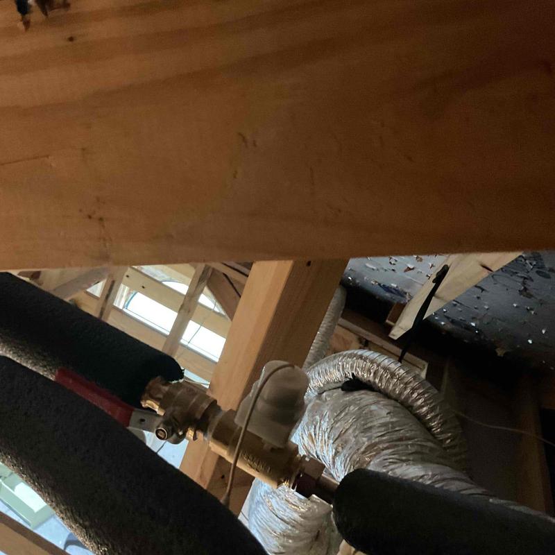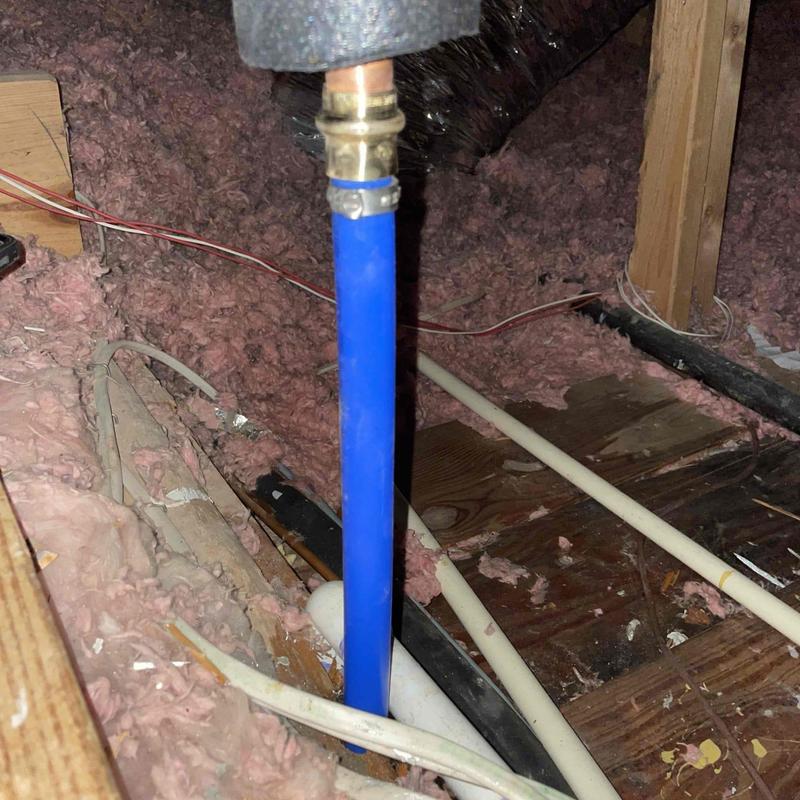 A plumber in Irving, Texas, repaired a leaking pipe that was allowing water to enter a house from the roof area. The plumber identified the issue in the vent or supply line in the attic, sealed the damaged section, and pressure-tested the system to confirm the leak was fully resolved.
