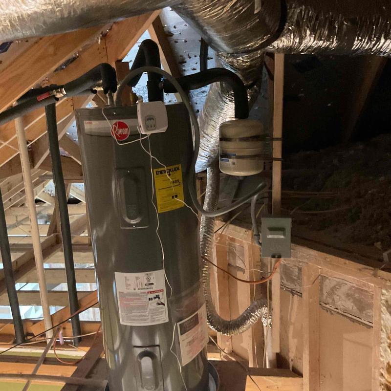 A technician repaired a leaking attic water heater in Oak Leaf, Texas. The work included identifying the leak source, tightening all water connections, and testing the unit for proper and safe function. This service helped prevent additional water damage and ensured the heater operated correctly.