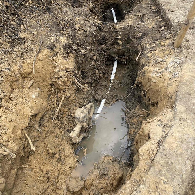 A plumber in Irving, Texas repaired a damaged water line struck during directional boring. The technician identified the break, restored water flow, sealed all connections, and tested the system to ensure consistent pressure and no leaks.