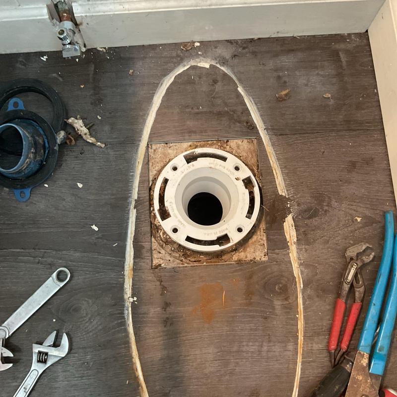 A plumber in Rowlett, Texas replaced a damaged toilet flange to stop a water leak. The old flange was removed, and a new sealed unit was installed. The toilet was reset and tested to ensure proper alignment and no leaks. A final inspection confirmed the repair restored full toilet function.