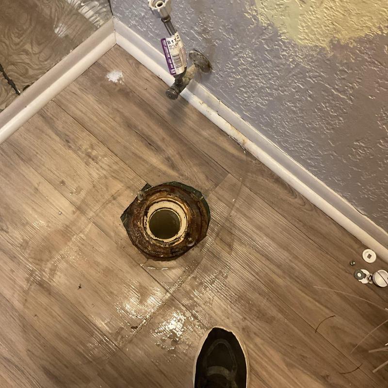 A plumber in Duncanville, Texas, fixed a leaking toilet that caused water to pool on the floor and damage the surface. The leak came from a worn wax ring at the toilet base. The technician replaced the wax ring, dried the area, and tested the toilet to confirm the repair stopped the leak.