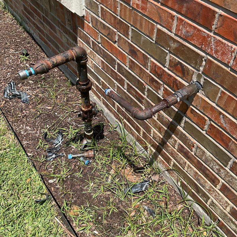 A plumber in DeSoto, Texas repaired an exterior water line damaged during lawn mowing. Water was spraying toward the home, risking interior damage. The plumber located the break, stopped the leak, and restored water flow. The interior was checked for water intrusion, and the plumbing system was confirmed to be working properly.